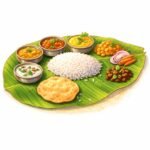 Idli, dosa, sambar, rasam, traditional leaf servings for authentic taste.