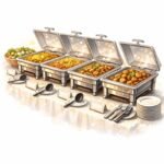 Customizable multi-cuisine menus with traditional leaf service, live counters, buffets, grazing tables, and beverages.
