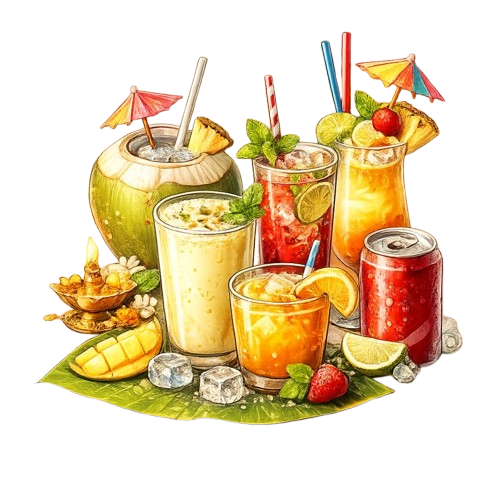 Refreshing lassi, juices, mocktails, and soft drinks.