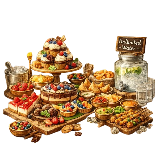 Host unforgettable social events at Sri Krishna Palace, the top choice for naming ceremonies venue, milestone birthdays party, baby showers hall, New Year party booking, get together party, and kitty party space in Bengaluru. Our elegant venue blends tradition with modern flair, perfect for intimate gatherings or grand celebrations, with spacious halls, open lawn areas for buffets or Sangeeth, and 200+ car parking including outdoor lighting and dedicated security guards. We provide everything for a seamless experience: elevated stage and additional music stage, plush VIP sofas, comfortable banquet chairs and dining tables, cozy rooms, ambient hall lighting, backup generator for uninterrupted power, high-quality sound equipment, 24/7 electrician support, unlimited water supply (hand wash areas and continuously cleaned toilets included), and open lawn for creative setups like Palace & Studio stations. Sri Krishna Palace offers diverse pure veg menu options tailored for social events like naming ceremonies, birthdays, and kitty parties. These customizable packages ensure a delightful experience with multi-cuisine flavors.