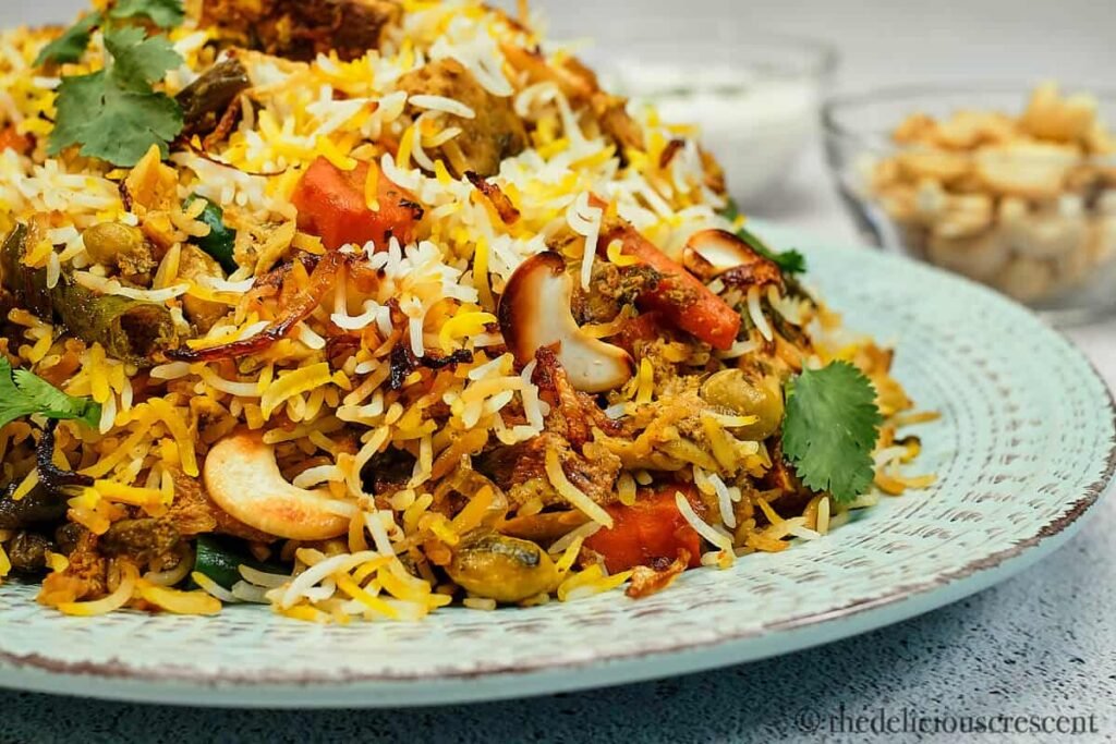 Veg biryanis, pulao, global fusion platters blending Indian and international flavors.